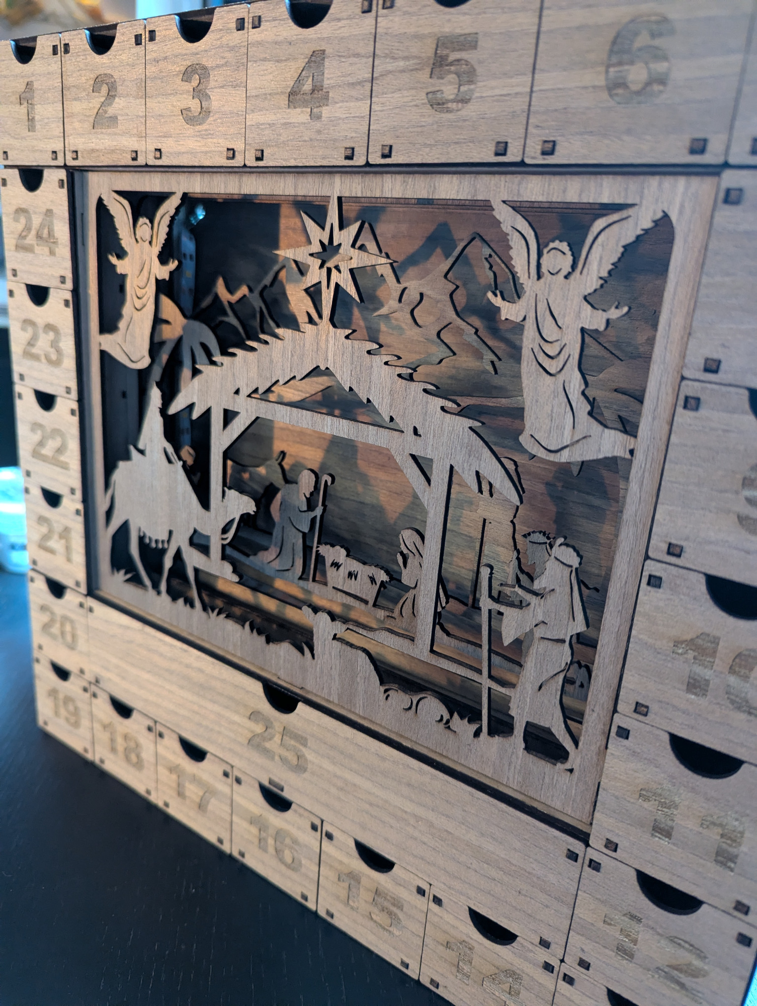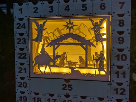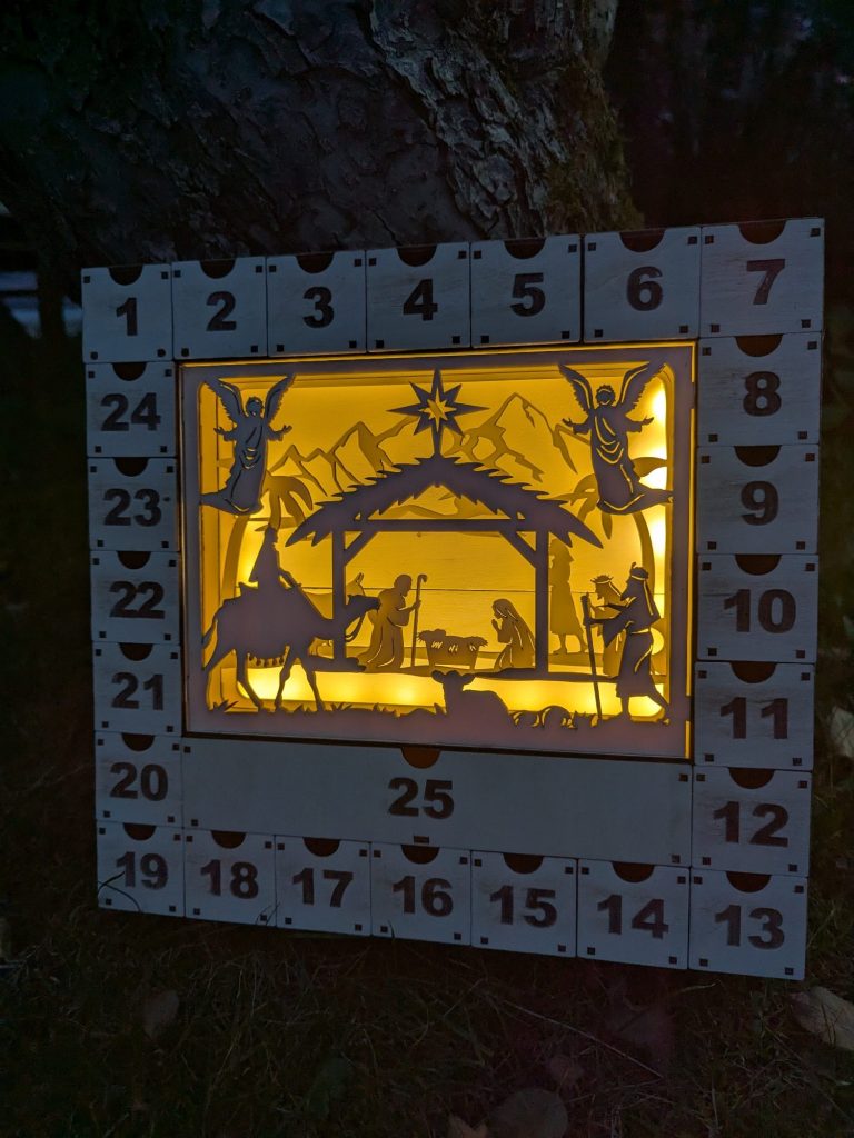 Adventkalender Krippe beleuchtet ca.35 x 35 cm 55€